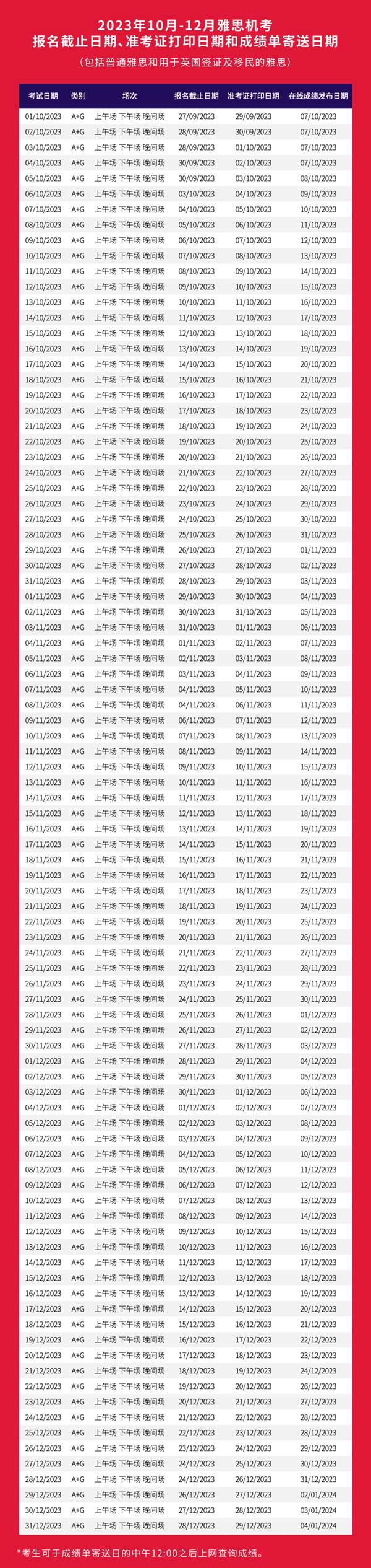 2023年10-12月雅思和用于英國(guó)簽證及移民的雅思機(jī)考考試日期